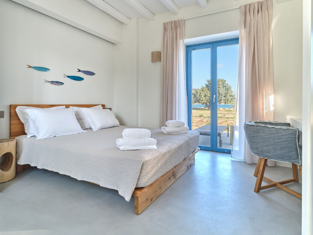 A brand-new beachfront villa in Kolymbithres, Naoussa, offering direct sea access and panoramic Aegean views. Set on one level, it features two residences, guest suites, six sea-view bedrooms, private terraces, and elegant indoor-outdoor living.